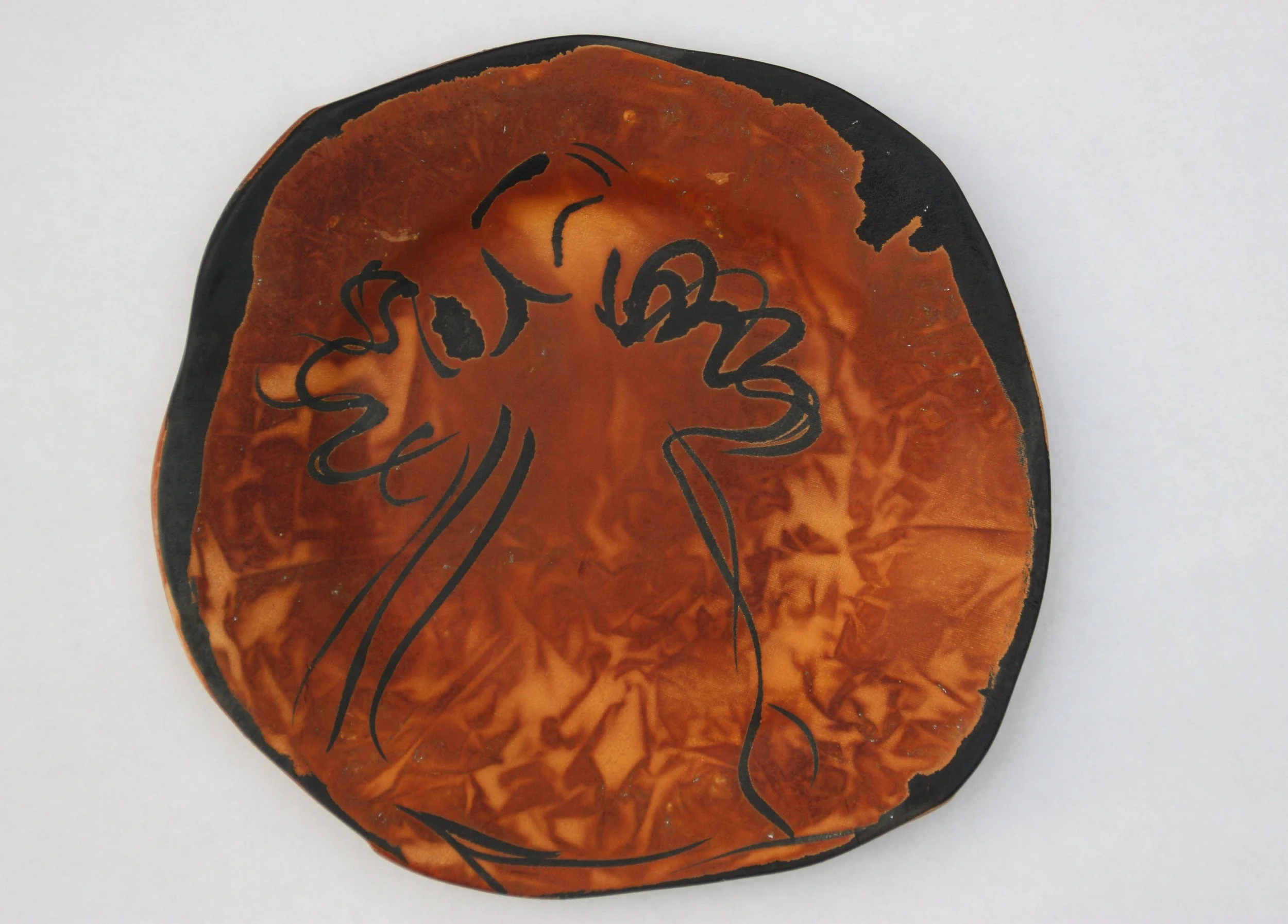 I made this word up! A combination of ferric and ink. I was experimenting. I used Indian ink and ferric chloride on clay and then created aluminium saggars which I barrel fired using a variety of combustibles. I found that by using different coloured ink, diluting it with water and varying the firing temperature that I could create wax resist effects, strong ink impressions or darker ferric markings.